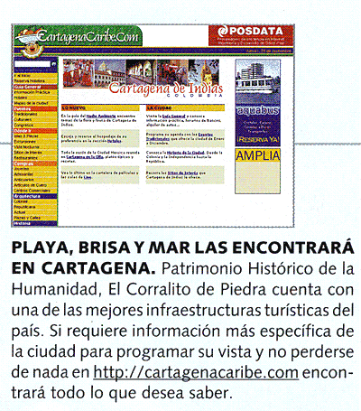 The national magazine Credencial, published on its issue of November of 2003, the following information about CartagenaCaribe: